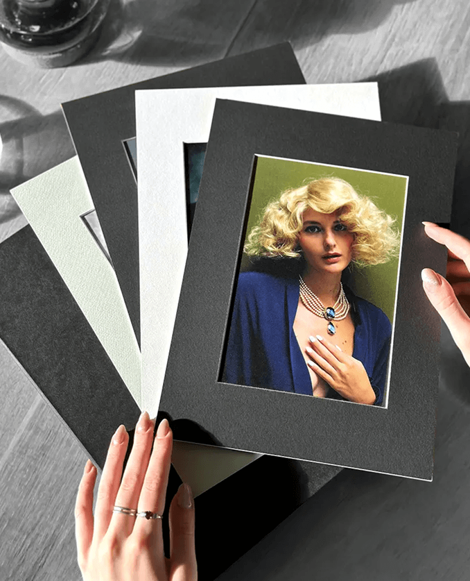 Снимки для фотокарточек с паспарту печатаются на специальной бумаге. Подберите идеальный вариант для вашей коллекции: бумага с лёгким фетровым покрытием, антибликовая бумага с глянцевой поверхностью и высокой белизной или немелованная бумага теплого оттенка с рельефной поверхность — мы предоставляем большой выбор дизайнерских бумаг для печати фотоснимков премиум качества, вы сможете выбрать любой из 7 вариантов. Такие фотографии вряд ли оставят кого-то равнодушным: авторские фотографии, семейная съемка, свадебные фотографии или студийная тематическая фотосессия преобразятся в таком элегантном оформлении. Каждое фото обрамляется паспарту, что помогает концентрировать внимание только на картинке, а завершает образ фотокарточки тончайшая нежная калька, защищающая от потертостей.