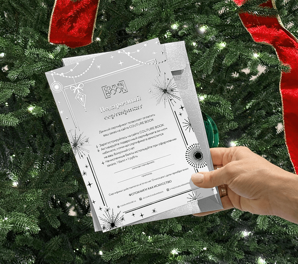 Еще один приятный бонус для настоящих и будущих клиентов COUTURE BOOK – срок действия подарка. Он активен целый год, поэтому у его обладателя будет достаточно времени, чтобы выбрать на что потратить подарочную сумму. Например, он сможет провести масштабную работу по сортировке архивных фотографий, которые затем попадут в большую семейную фотокнигу.