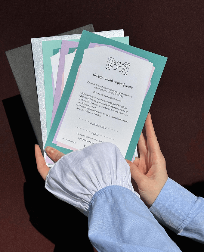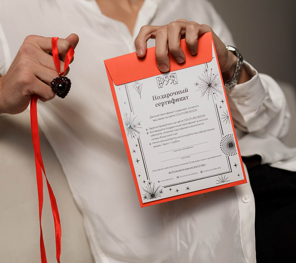 Фотокниги для команды COUTURE BOOK – это искусство. Поэтому обладатель сертификата сможет оценить качество и изысканность премиальной фотопродукции, а также персональный подход к каждому заказу.